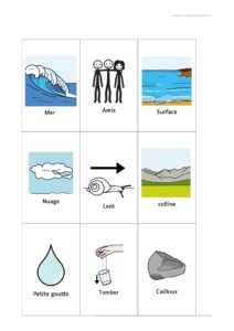 Cet album est un formidable outil pour découvrir le cycle de l’eau sous forme ludique et poétique. Pour prolonger cette découverte, on peut réaliser un schéma du cycle de l’eau. Le schéma ci-dessous reprend les différents éléments de l’histoire, dessinés en version contrasté pour pouvoir être facilement lus.